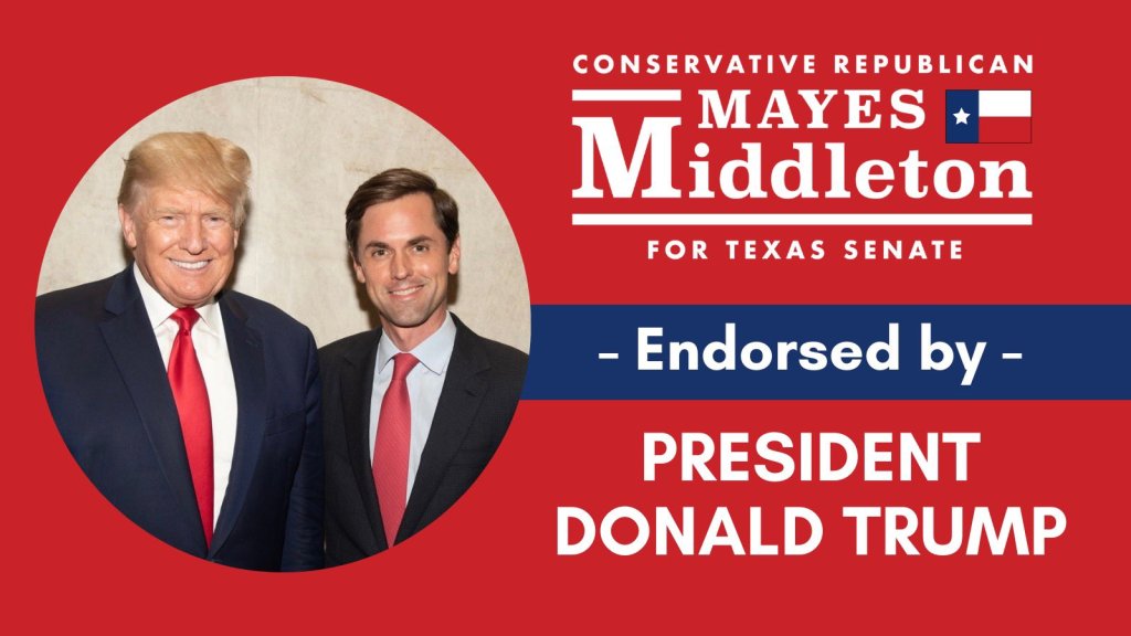 If elected Money has pledged to rid the State of “Sharia Law”, which doesn’t exist in the United States, and replace it with his Christian Nationalists ideologies whether you like it or not. He will promote law and order, except for the Jan 6 rioters and he will replace Ken Paxton’s on the ass of Trump. That is what money can do for “Money” Mayes Middleton.