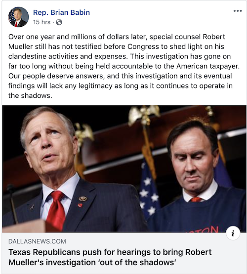 WASHINGTON — Four Texas Republicans joined a call for special counsel Robert Mueller to testify before Congress on his investigation’s expenses as he looks into possible ties between Russia and Donald Trump’s presidential campaign.