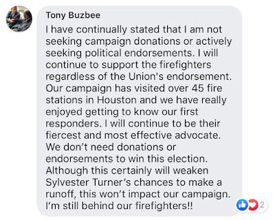 Unlike Buzbee Boykins has qualifications to be Mayor. He is not politically ignorant. Hopefully that is why the Union endorsed Boykins over Buzbee. Buzbee fired back claiming he was campaigning on city property courting the Fire Fighters vote: