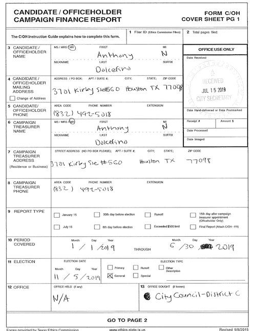 I was looking at campaign finance reports for Houston City Council races that voters in District E would be interested in. You can view that here if you would like. I also became curious about a couple of other candidates, one being Anthony Dolcefino, the son of Wayne Dolcefino. From a previous post;