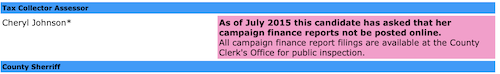 The tea party people believe in transparency, open government, yada yada until it comes to Cheryl. Galveston County does not require candidates or elected officials to post, for all to see, their campaign reports. Cheryl is one of the few who opted to require someone, like me, to go to the Galveston County office to review her reports. According to the Galveston County website: