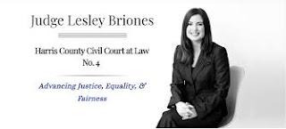 Judge Lesley Briones is the incumbent of the Harris County Civil Court #4. Briones was appointed to the position by the Harris County Commissioners Court after Judge William McLeod declared, a couple of months after being elected to the seat, he was going to run for the Texas State Supreme Court. Unbeknown to Judge McLeod, his declaration, by law, made him ineligible to continue to hold the position.