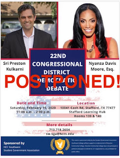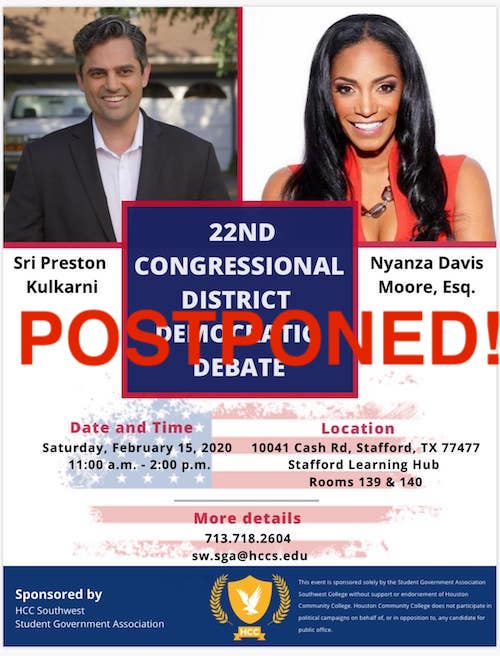UPDATE: THIS DEBATE HAS BEEN POSTPONED. THANKS TO THE STUDENTS AT HCCS FOR THEIR TIME AND EFFORT TO PUT THIS DEBATE ON. LETS HOPE IT HAPPENS SOON.