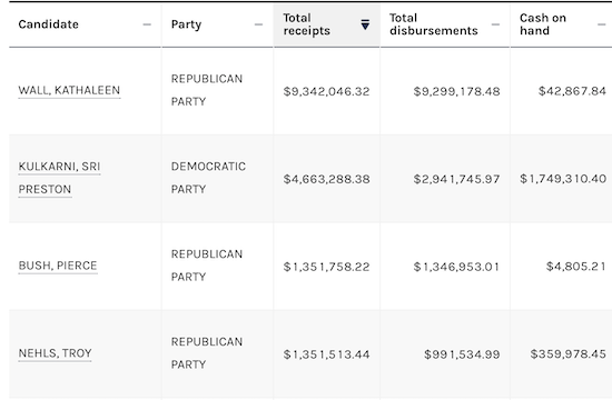 Nehls picked up his fundraising. He only had $30,000 at the end of his primary with Kathaleen Wall. In a must win district Nehls performed poorly. I would think that at the very least he would have raised $2 Million to be competitive.