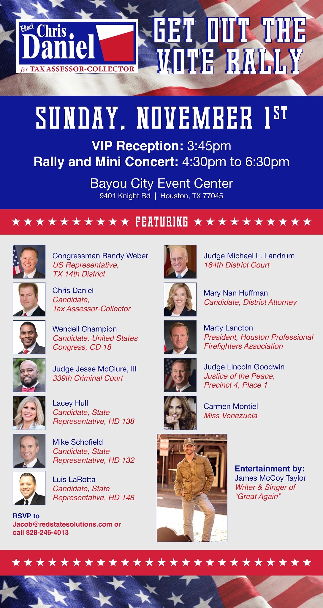 The Harris County Republican Party is holding a Get Out the Vote rally and concert this Sunday. Now to be fair I’ve been to a GOTV rally recently but it was outside and required social distancing and masks. I doubt the HCRP has any intentions of being safe, after all, the COVID pandemic is still a hoax to many of them.