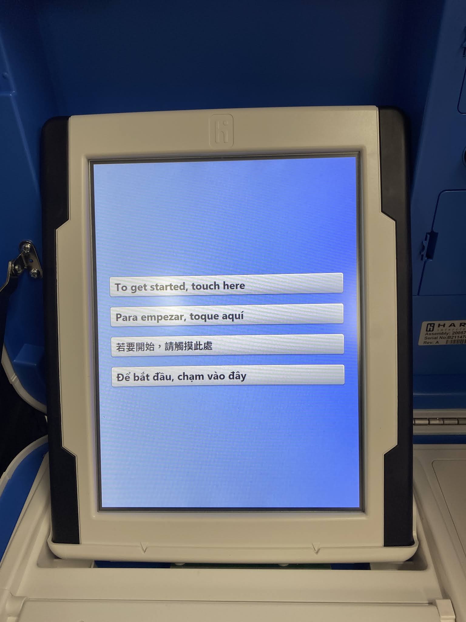 The process is easy. Check in. Enter your code via a touch screen. Insert your blank paper ballot. If necessary adjust the size of the text. Using the touch screen, select the candidates of your choice. Review your selection then print your ballot. Verify it again then scan it in the scanning machine print to leaving.