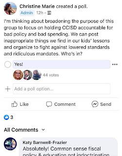 Parizo is now going to change the focus of her Facebook page to encourage teacher policing. What’s next? Maybe pay students to become snitches? Lucky for these teachers and students Parizo lost. Bad. Maybe she should focus on running for another seat, like against Randy Weber. She is a perfect Qanon candidate.