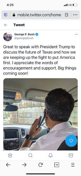 Texas Land Commissioner George Pedro Bush joins Texas Senator Ted Cruz, Texas Attorney General Ken Paxton and every republican elected official as another Trump suck ass. Pedro is running for Texas Attorney General and he needs the blessing from Trump. Ken Paxton kissed trumps ass by filing lawsuits against the Affordable Care Act and legal action in support of the Big Lie all hoping he would get a pardon for the various felony indictments. Instead trump crapped all over him and left him to fend for himself.