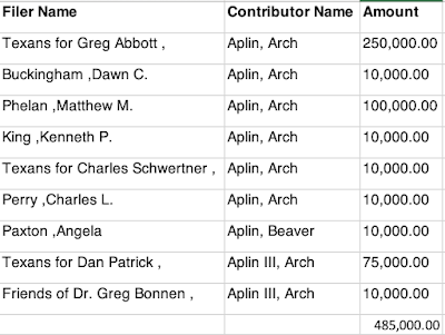 I’ve written about the donations to Greg Abbott and others by the owner of Bucee’s, Arch Aplin. From When you stop at Bucee’s for beaver nuts