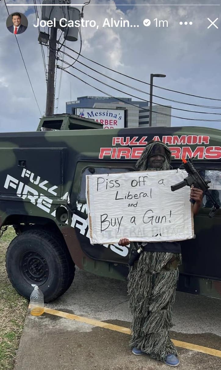 Joel Castro is a Mexican American City Councilman in Alvin Texas. He is a Mexican MAGAt. Alvin is probably the epicenter of “republicanism”, not “conservatism”. There is nothing conservative about playing with guns especially after a couple of mass shootings within the last few weeks.