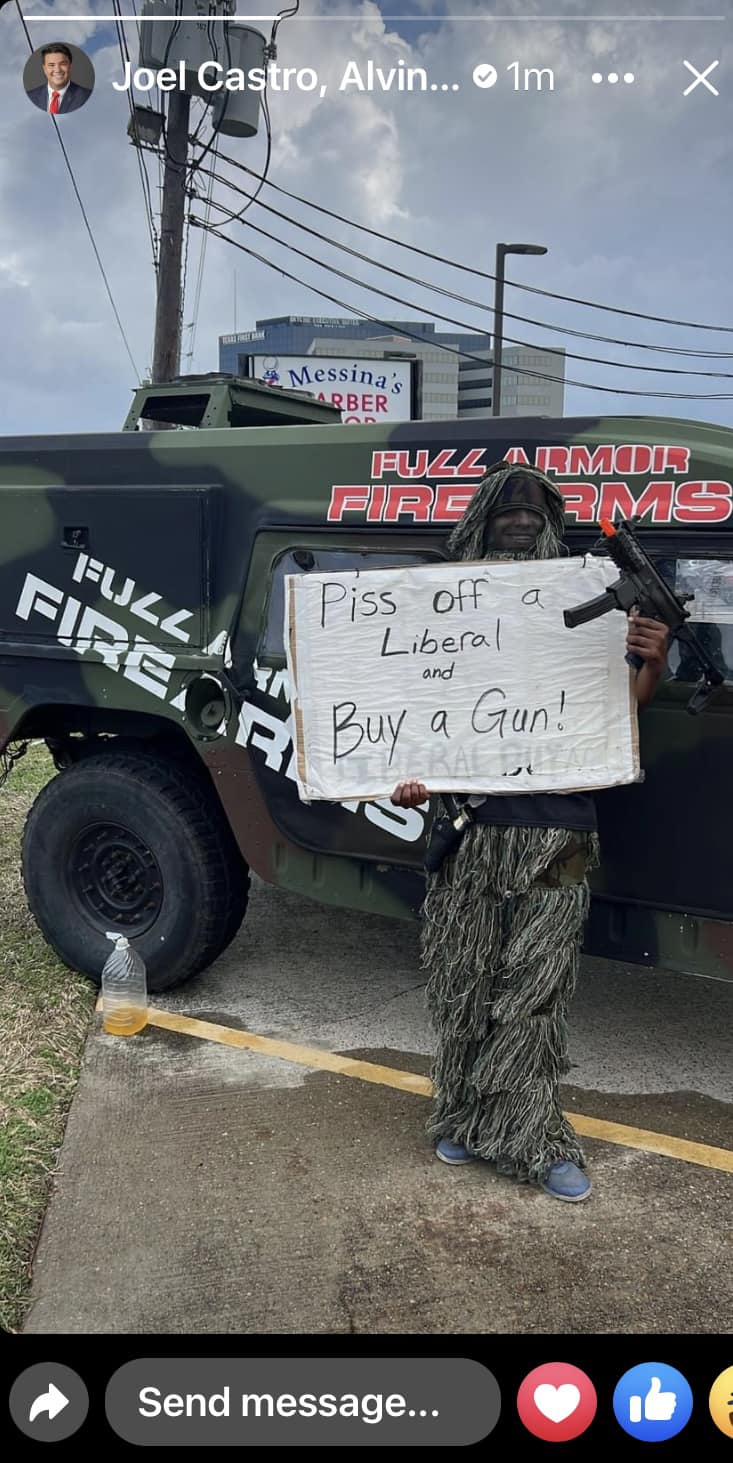 Texas Republicans are very proud of being #1 in unlimited access to guns. They love their guns and letting anyone dress like GI Joe or a cop with loaded assault weapons, body armor, and silencers. This is who they are.