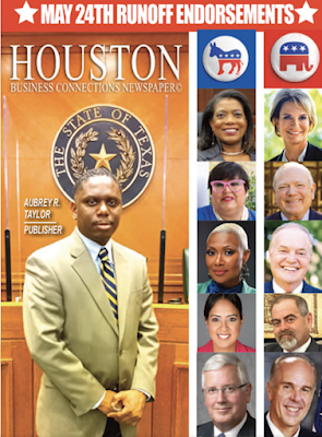 This is hard to prove. There are organizations that seem to be running a “pay to play” endorsement. For a $25,000 donation you too could be listed on their endorsement mailer or magazine. As a possible example Aubrey Taylor of Houston Business Connections has a well designed blog. I don’t believe it is an actual website, just a blog. (like mine but my design sucks) Taylor lists endorsements like the one below. He is listed as a “newspaper” although I have never seen anything in print. Because of this he can receive donations without disclosure. I doubt HBC actually interviewed some of the candidates listed below.