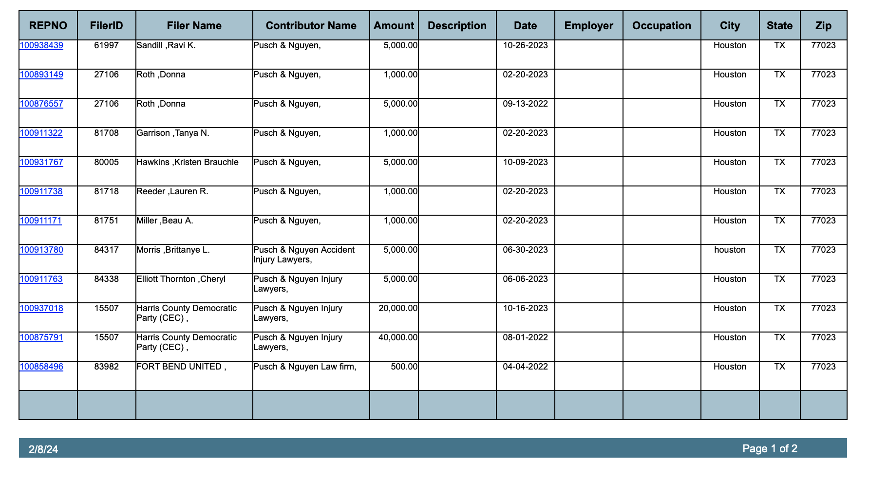 As mentioned in my last post HCDE is funded by two individuals/entities from the Pusch & Nguyen law firm. Over the last few years Pusch & Nguyen have contributed to various candidates and organizations including $60,000 to the Harris County Democratic Party. See below.