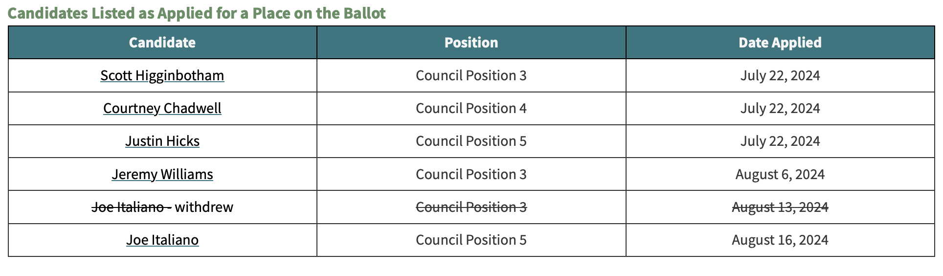 Courtney Chadwell is the only council member that is not being challenged……as of yet. Election information can be found here. Hopefully League City voters will restore civility and fiscal responsibility to Council.