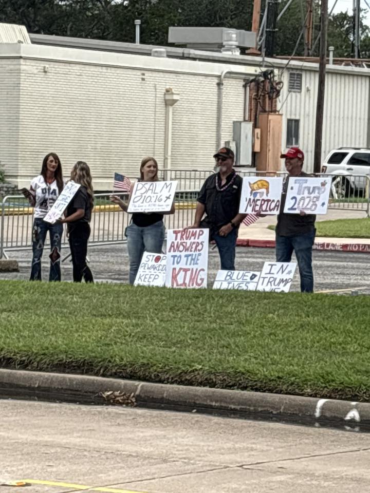The protest was a huge success with almost 1000 showing up in a deep, deep, red area of Texas. The police did a great job and were greatly appreciated. The Trump supporters arrived in the single digits, at most 9 at one time. They had more signs than people to hold them. That didn’t stop Long from making ignorant comments on social media and commenting on a made-up claim about being harassed. (That didn’t happen)