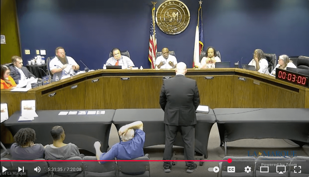 If you haven’t been keeping up to date with the fiscal situation in La Marque you are missing an unhinged side show orchestrated by Lowry. Last night the Mayor had enough of Lowry’s baseless claims of illegal activity by the Mayor and other Council Members and called him out for his continued spreading of lies. Instead of finding solutions to a very serious problem, Lowry continued his baseless allegations including accusing the Mayor of accepting bribes by developers, a relatively new allegation. As the Mayor said, the only one who is claiming this illegal activity is Lowry, not the police, not the DA, not the Texas Rangers. It is all baseless, made up, allegations.