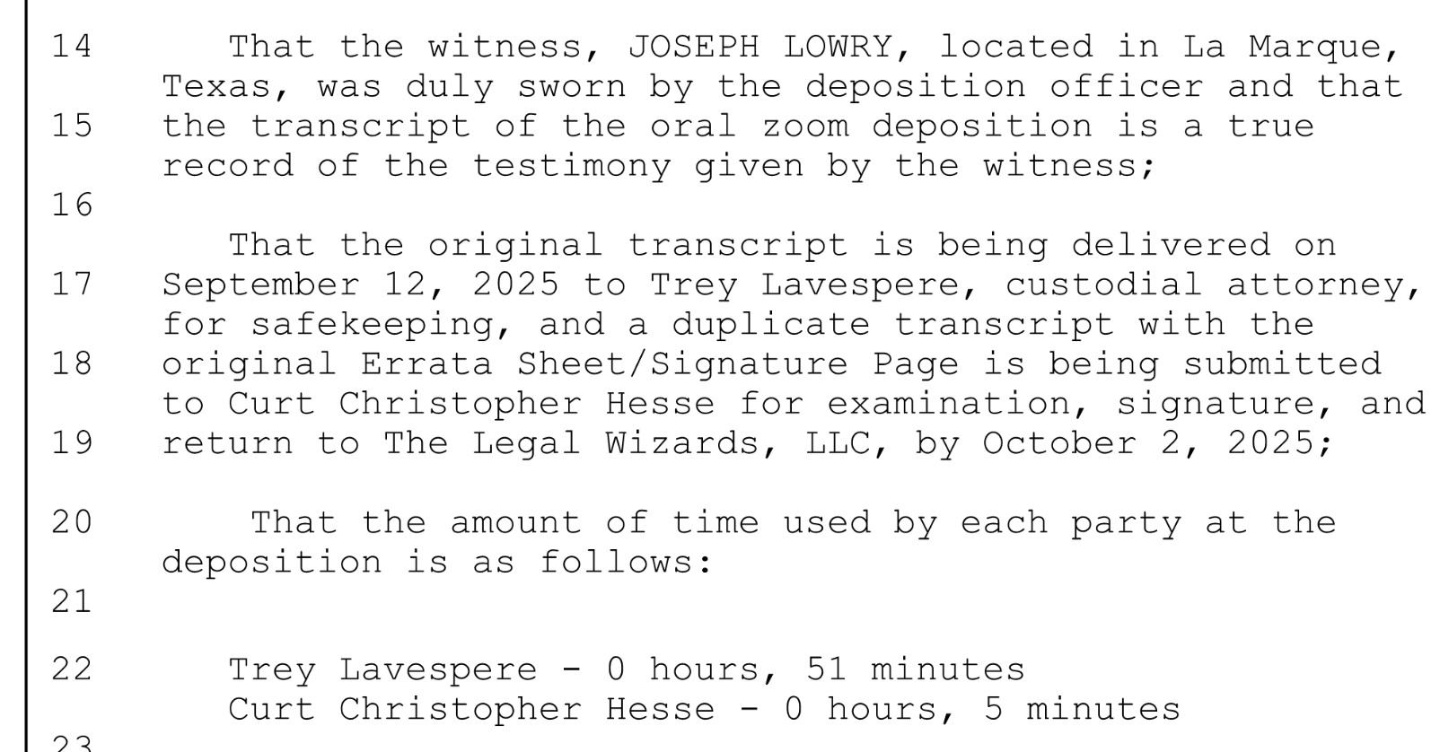 Maybe this delay has something to do with Lowry’s deposition. According to a document filed with the court Lowry was deposed on July 31, 2025. He was deposed by the plaintiff’s attorney for 51 minutes and Lowry’s attorney for 5 minutes. Maybe that deposition will become public record. I’m sure it would be very interesting. You can read the entire document here.