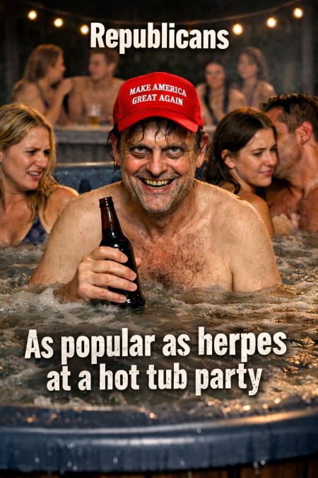 At this point Trump is about as popular as herpes at a hot tub party.