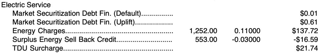 I actually used about the same kWh than the previous month but this bill had a TDU Surcharge of $21.74. According to the Chronicle: