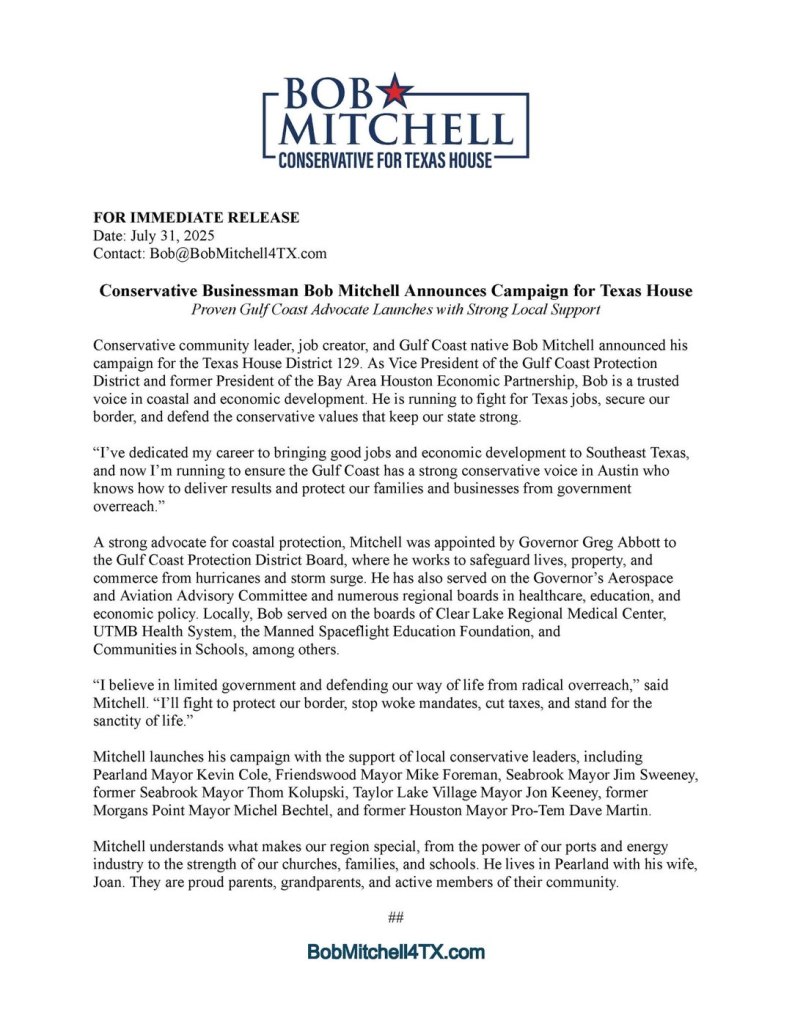 The race for House District 129 might be interesting next year. The current Representative, Dennis Paul, has held this office for 10 years with little to show for his time except to promote Abbott’s voucher bill and gun sanctuary bill. He is now running on his unimpressive record for State Senator.