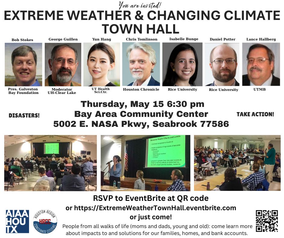 RSVP is requested but not required at EventBrite QR or https://ExtremeWeatherTownHall.eventbrite.com, or by email to Bounder77062@yahoo.com