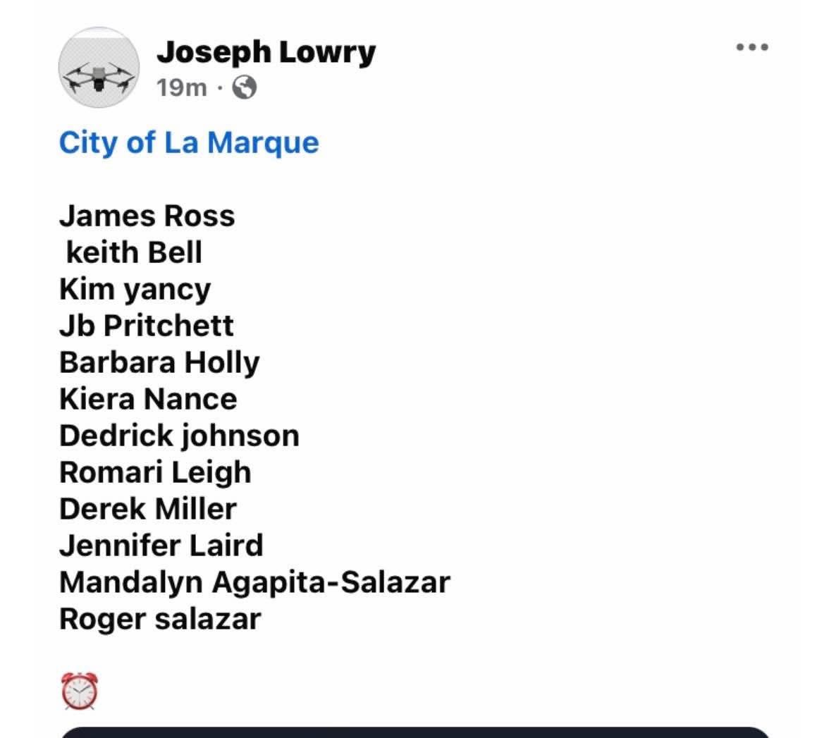 1. Allegation: I Do Not Reside in the City of La Marque This allegation is demonstrably false. I am a resident of the City of La Marque and have lived in La Marque for more than thirty (30) years. Documentation establishing my residency includes, but is not limited to: A recorded deed showing ownership of my home located in La Marque A valid Texas Driver’s License listing my La Marque address (included by the affiant in his own submission) Galveston County Appraisal District records listing my La Marque residence A voter registration card listing my La Marque address A voting history reflecting consistent participation as a La Marque voter These documents conclusively establish my residency and eligibility to serve as Mayor under the City Charter and Texas law. —