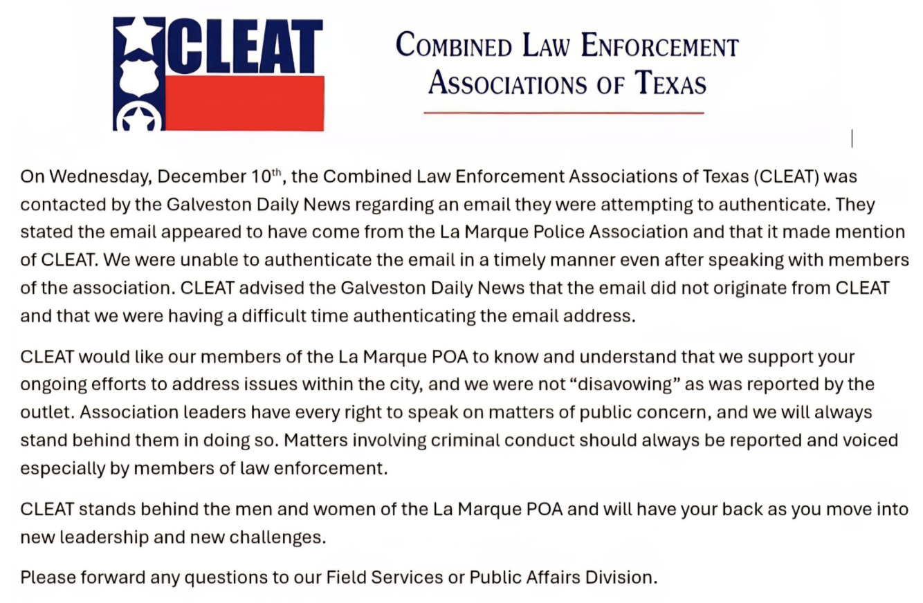 2. Allegation: Acceptance of Bribes or Corruption This allegation is false and unsupported. I have never accepted a bribe, engaged in corruption, or violated my oath of office during my twenty-two (22) years of public service to the City of La Marque. I have never been: Investigated Charged Indicted Tried Convicted Found liable Or administratively sanctioned for any act of corruption or misconduct. No evidence, findings, judicial rulings, or investigative determinations have ever substantiated this allegation. The affidavit provides no proof because none exists. —